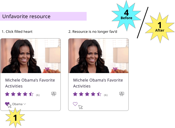 Decreased the number of clicks to unfavorite a resource from 4 to 1.
