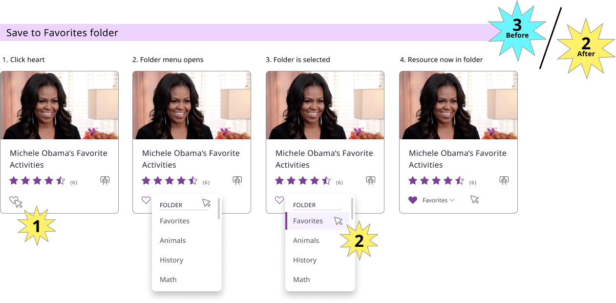 Decreased the number of clicks to favorite a resource from 3 to 2.
