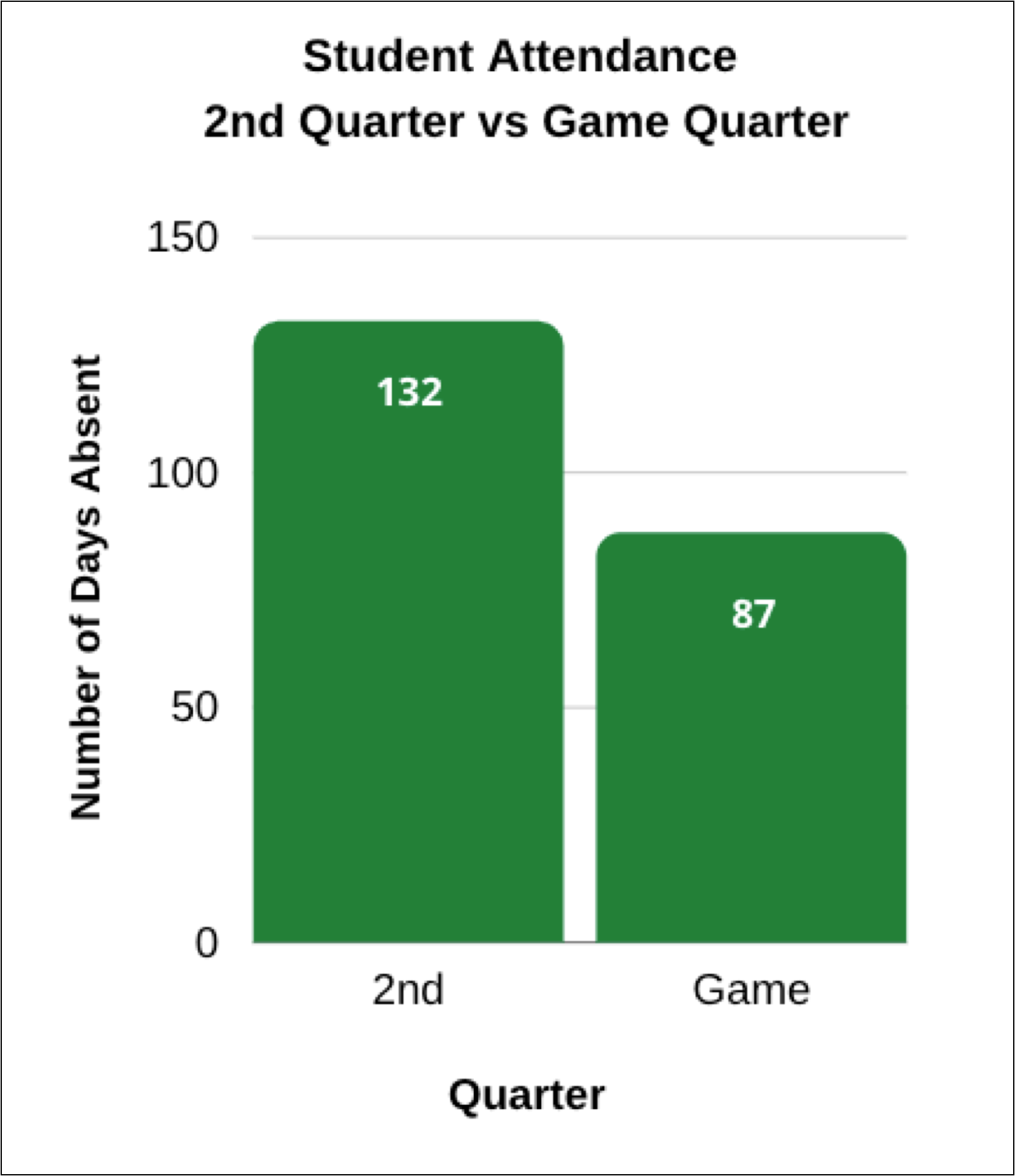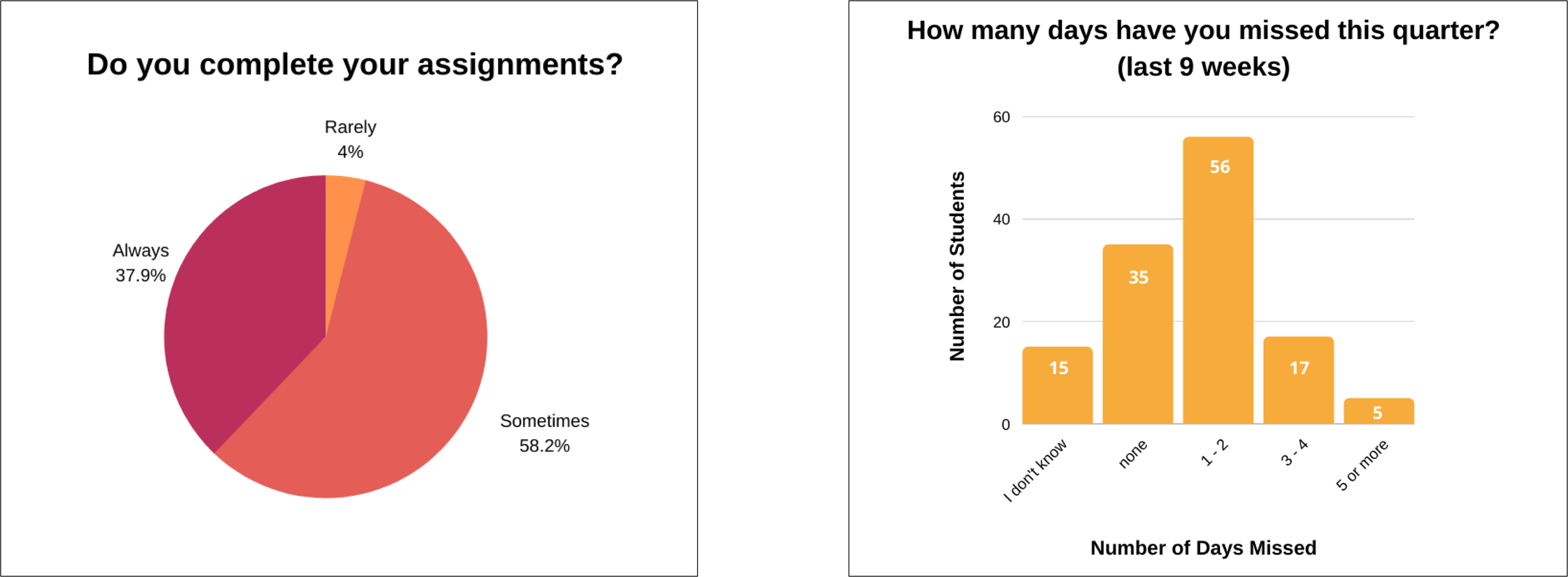 Absences pose a significant issue, as students who are not present cannot learn or engage with the material. Data indicated that at least 75 students missed school during a 9-week period (a quarter), highlighting the need for an incentive to encourage attendance. Additionally, 54% of students are not regularly completing their classwork, so our solution must incorporate an assignment completion component.