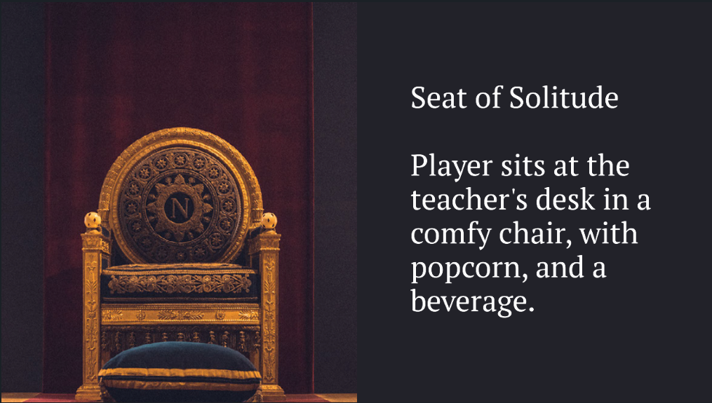 Quest is a complex game and therefore contains a lot of information for a teenager to remember. This resulted in students taking up class time asking “game” related questions, exhausting the teacher.