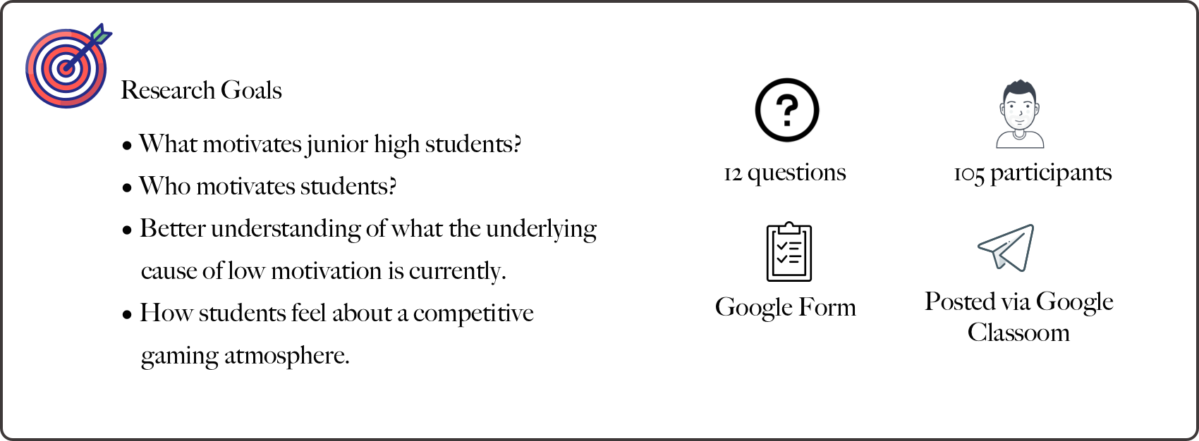 To gain a deeper understanding of what motivates junior high students, a student survey was conducted.