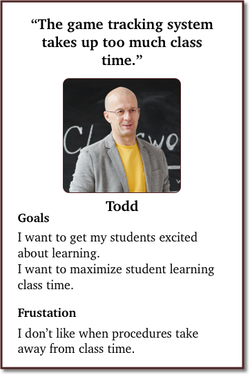 Reframed Hypothesis: If we design a more time efficient student game tracking procedure then this will save class time for teachers.