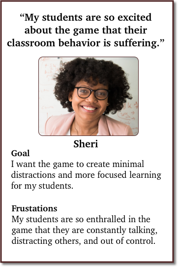 Reframed Hypothesis: We believe that if we create and include consequences for behaviors within the game, then students will be encouraged to be on their best behavior for their teacher.